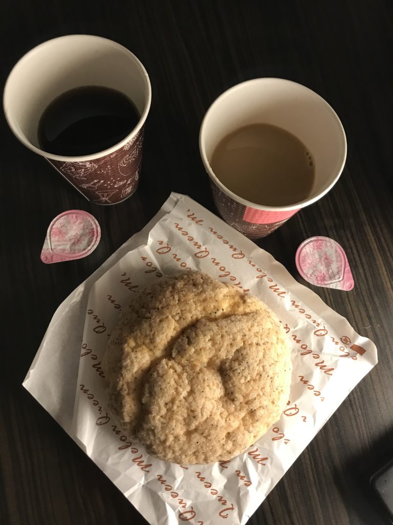 で、今日散歩中に見つけたメロンパンを食べました。